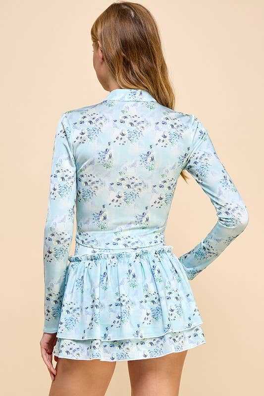 Sunshine, sweet serves, and daisy dreams — the Daisy Dinking Jacket is made for dinks and daisy days. This ultra-girly zip-up features a soft blue daisy print, ruched center for a flattering fit, and a zipper front for easy layering. Whether you're perfecting your dink or picking out brunch spots, this jacket brings the flower power. Pair it with Daisy Dinking Skirt for a full bloom moment that says: cute wins every time.